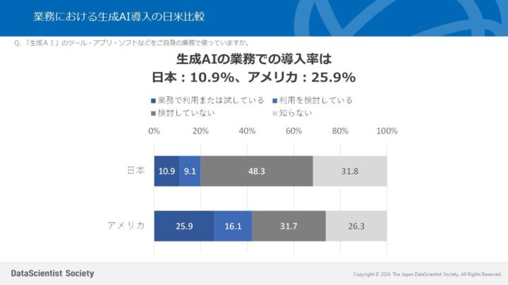 Data of Data Scientist シリーズ vol.51『日本:10.9%、アメリカ:25.9% - 生成AIのビジネス導入率』