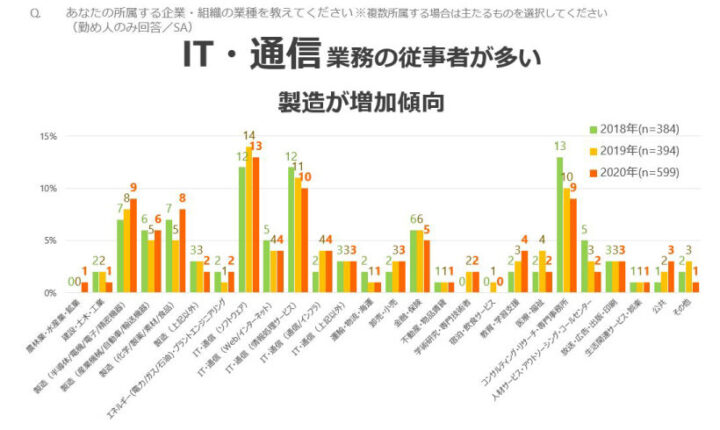 ・DSの所属業種で最も多いのは「I T・通信」。製造業は増加傾向