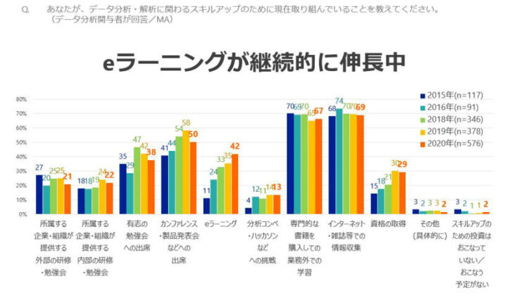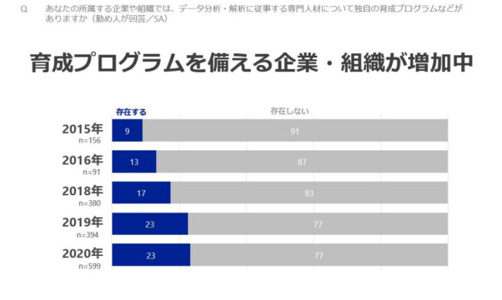・DSの育成プログラムを備える企業は、eラーニングを中心に2015年と比較して約2.5倍に増加